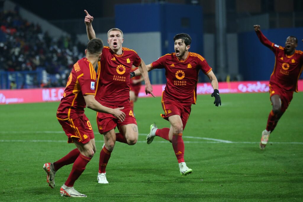 (ALBERTO MANDOLESI) Tre punti pesantissimi per la Roma che in casa del Sassuolo non vinceva da maggio del 2018. Una vittoria determinante per non perdere contatto dalle prime e per scrollarsi di dosso la “marcatura” del Bologna, fermato a Lecce. Nel primo tempo giallorossi tengono il pallino ma al primo tentativo sono i neroverdi a passare in vantaggio col brasiliano Henrique. Nella ripresa fuori lo spento Karsdorp (per lui quello del Mapei è un campo stregato) e dentro KRISTENSEN che vive la sua serata di gloria. Prima si guadagna il calcio di rigore con cui Dybala pareggia i conti e poi provoca la rocambolesca autorete con cui la squadra di Mourinho fa sua la partita. Per il Sassuolo pesa l’espulsione (giusta) subìta dal rumeno Boloca