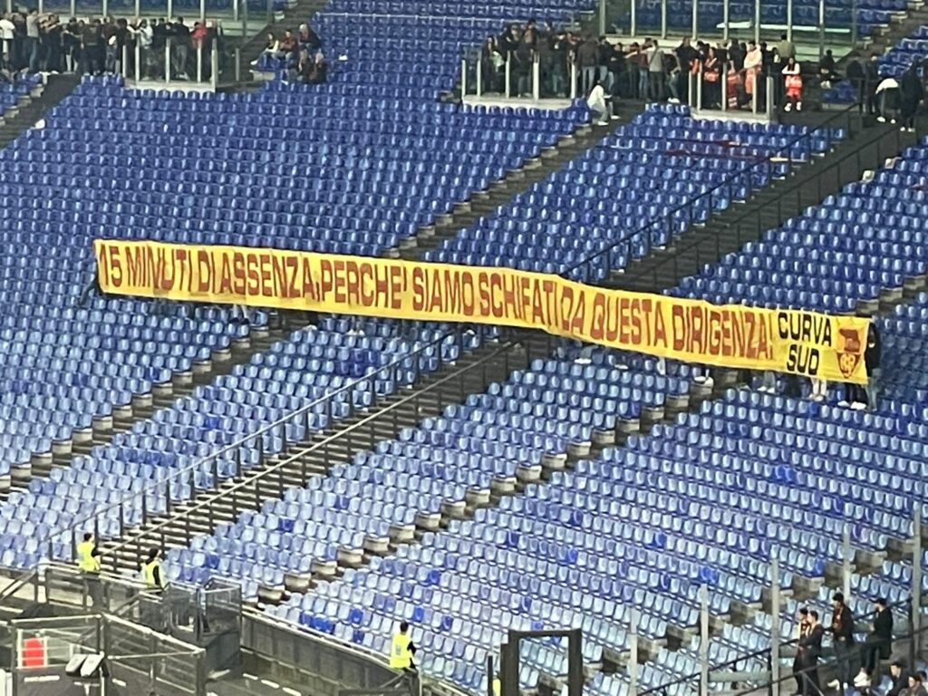 (CORRIERE DELLA SERA)”15 minuti di assenza perché siamo schifati da questa dirigenza», firmato Curva Sud. È questo lo striscione, con sopra ben impresso il vecchio stemma con l’acronimo ASR, che ha campeggiato per i primi 15′ al centro della curva completamente vuota. La protesta è proseguita anche dopo l’ingresso dei tifosi, che hanno esposto un altro striscione di contestazione nei confronti della proprietà americana. «Friedkin la vostra assenza è talmente palese, che a parlare ci avete mandato un francese», cioè il d.s. Ghisolfi. (…)